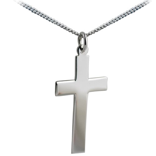 British Jewellery Workshops Silver 34x19mm plain flat Latin Cross with Curb chain 18 inches Review